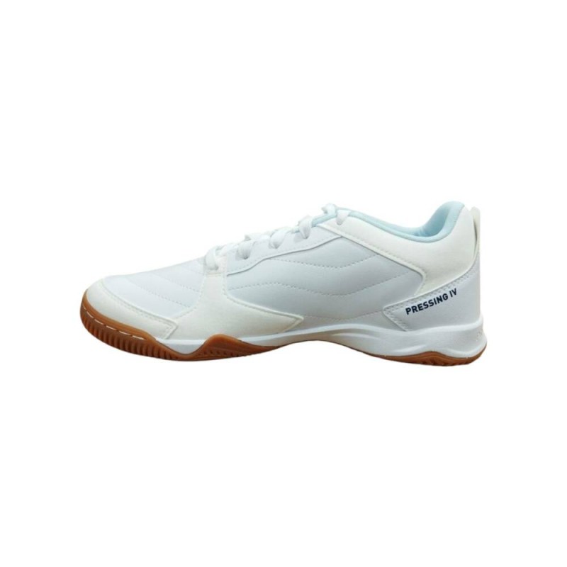 Zapatillas de fútbol sala con diseño ligero y resistente. Fabricadas con parte superior sintética que ofrece buen contacto con el balón y refuerzos en las zonas de mayor desgaste. Cierre con cordones para un ajuste seguro. Plantilla acolchada que brinda comodidad durante el juego. Suela de goma antideslizante, ideal para un óptimo agarre en pistas interiores. Estilo deportivo con detalles modernos.
