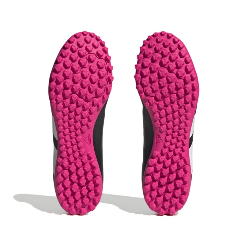 La bota de fútbol Adidas Predator Accuracy.4 TF (referencia GW4647) es un calzado técnico de alta precisión diseñado específicamente para dominar en superficies de moqueta, césped artificial corto y terrenos duros (Turf). Su filosofía se centra en el control total y la agilidad necesaria para el fútbol de espacios reducidos, donde la rapidez de pies y la precisión en el toque son determinantes. Presentada en un negro profundo y elegante, esta bota combina una estética clásica y agresiva con la tecnología necesaria para el jugador que busca estabilidad, tracción y una respuesta inmediata en cada movimiento explosivo.